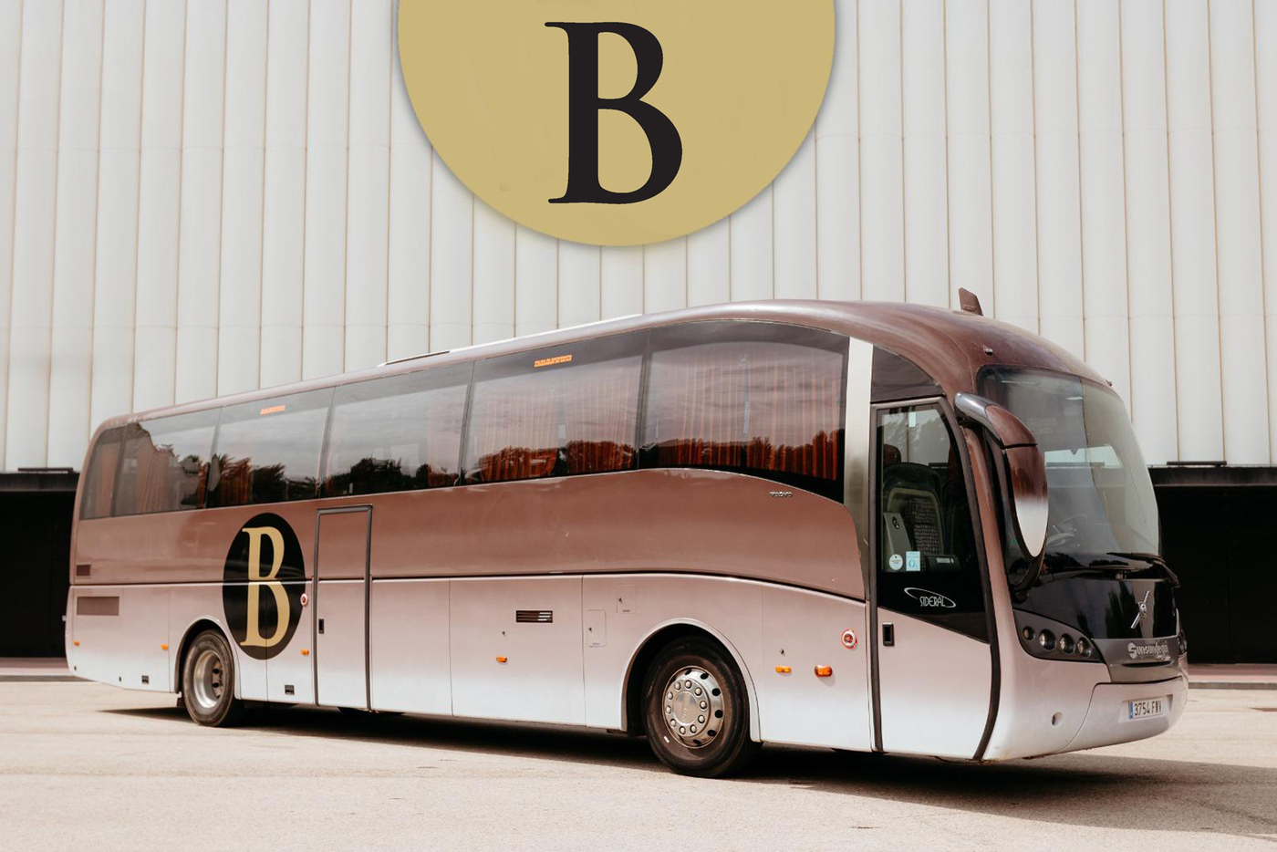 Disponemos de nuestra propia flota de autobuses. Desde furgonetas de 9 plazas hasta autobuses de 55 plazas. Si necesitas un autobús para desplazar a tus invitados hasta nuestras instalaciones, no te preocupes. Nosotros nos encargamos de todo. Además si necesitas un autobús para tu evento, en cualquier zona, consúltanos las posibilidad.